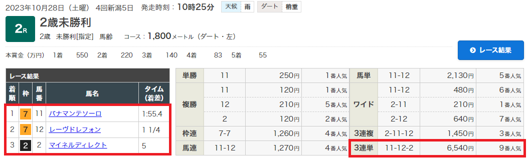 28日(土)新潟2Rで無料情報3連単的中!