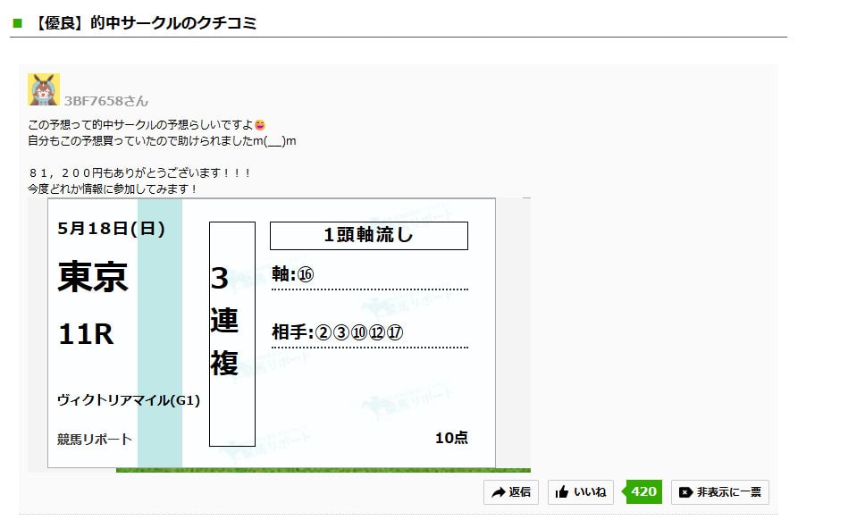 G1攻略に向けて【的中サークル】の口コミを確認して、ご登録へ進んでください。