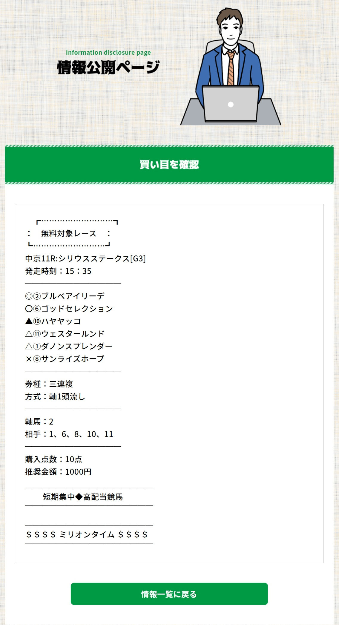 スプリンターズステークスを予想してかなりハズしていたサイトが多いなか、無料情報で6桁的中を生み出した『ミリオンタイム』は勝てる・使える・優良サイトと認定!