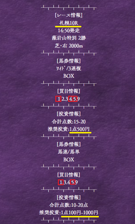 8月13日(日)札幌10R無料情報・合計『151.8倍』的中