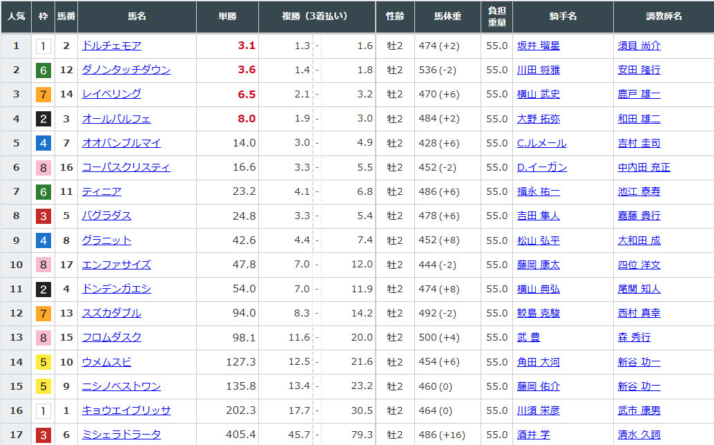 上位人気で荒れる要素はあまりなさそうですかね。1倍台が4頭と人気は割れている印象です。