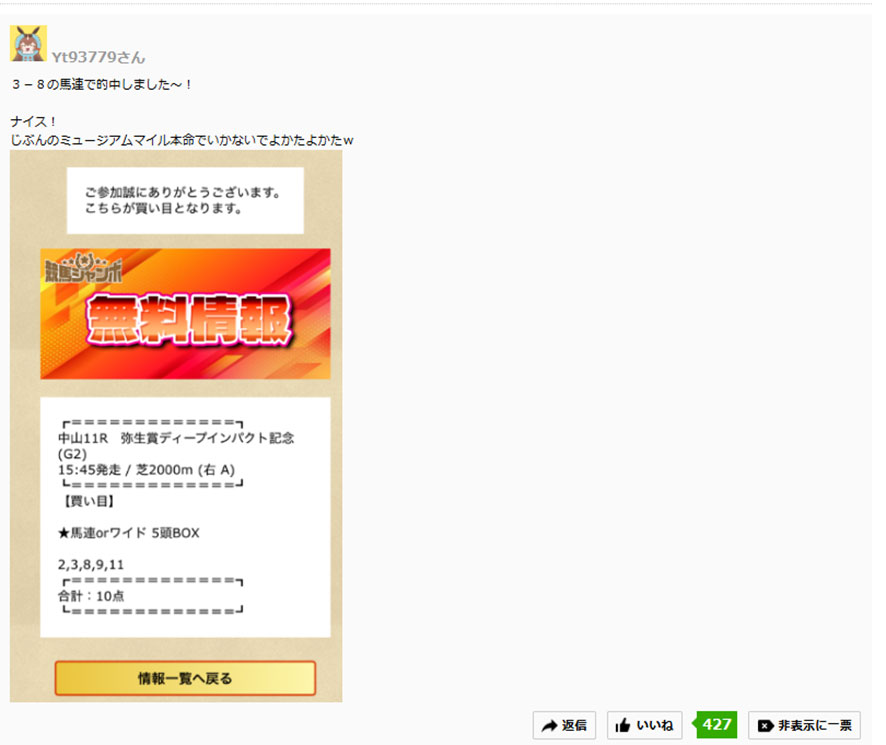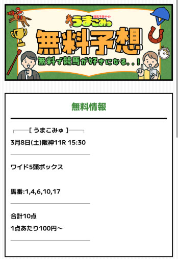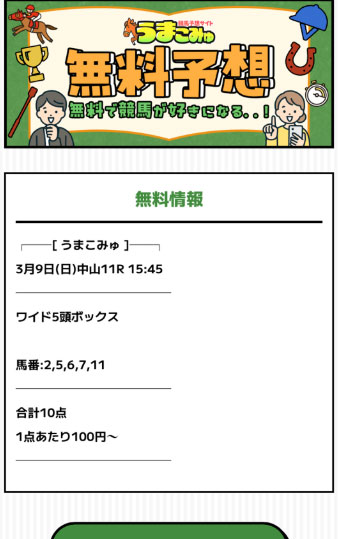 勝てる予想がすぐ分からなかったので【うまこみゅ】にはご登録されないで下さい!
