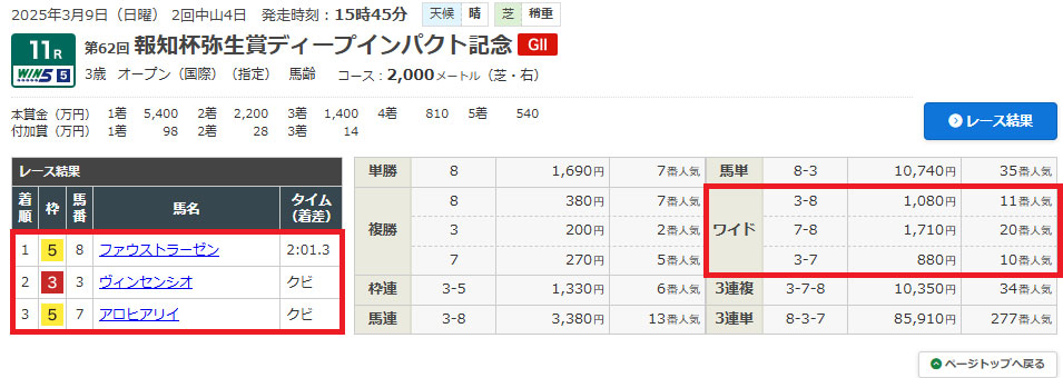 中山競馬場11R弥生賞ディープインパクト記念(G2)の予想になります。