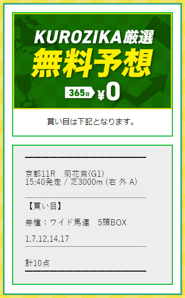 今回は【KUROZIKA】を検証しましたが無料情報の的中もさることながら実質無料で有料情報に参加できて、少点数の買い目で的中し見事に黒字収支だったので【優良】認定したいと思います!