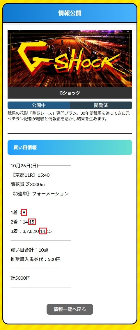【菊花賞】3連単10点予想的中!