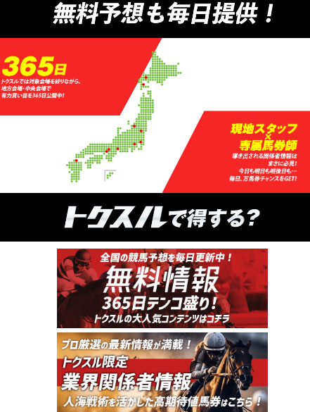 今回【トクスル】を検証しましたが、各地に現地スタッフを配属しているだけあってかなり精度の高い予想を提供していることが分かりました。