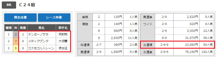 2-6-9で的中! 3連複万馬券的中です!