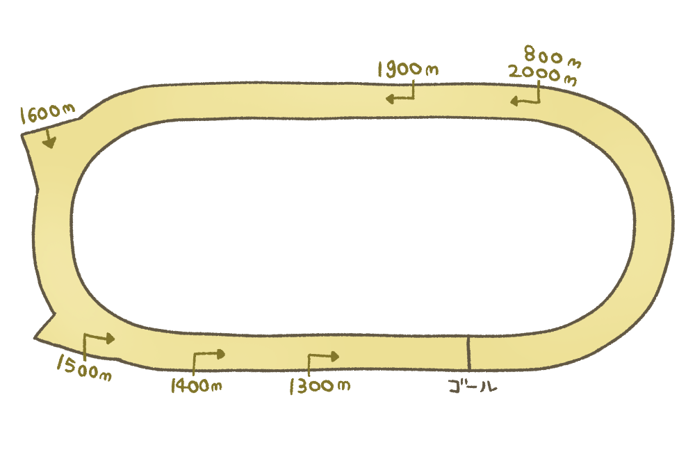 大きな坂もなくほぼ平坦コースとなっていて、直線距離も短いため一般的に逃げ・先行馬のほうが有利なのが特徴です。
