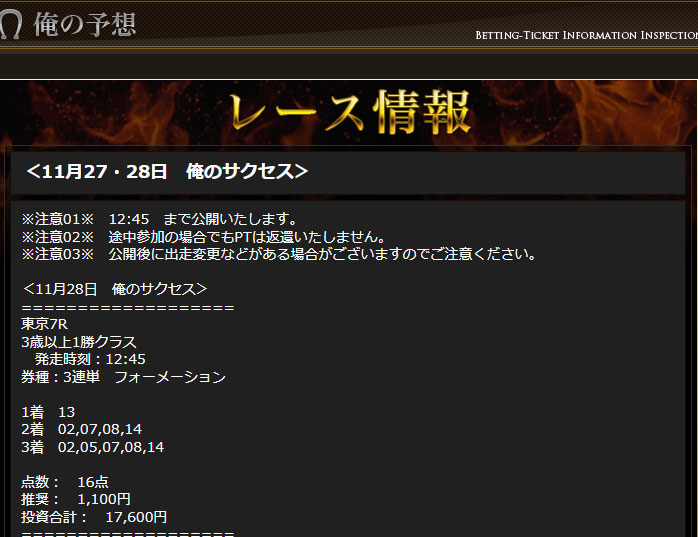情報2レースとも大的中でしかも大万馬券!