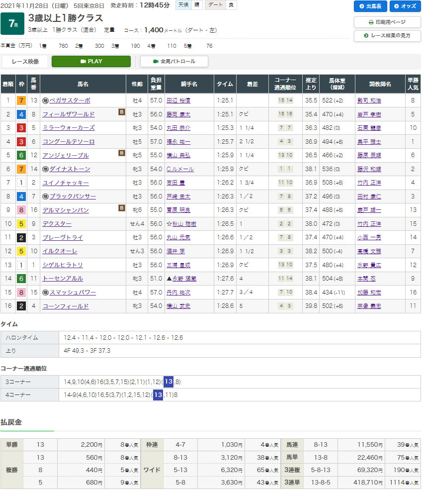 続いての情報は翌日の11/28(日)東京7R3歳以上1勝クラス!