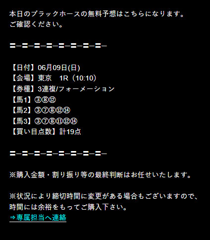 次の週の6月14日(金)に公開されていた買い目がこちらになります。