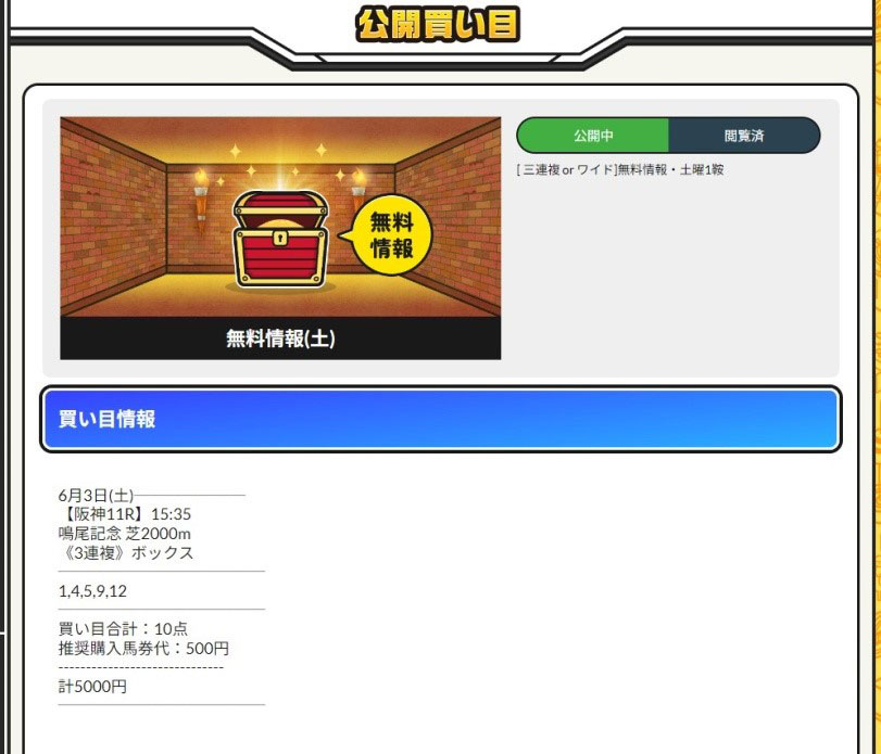 馬券代もそこまで点数も買うわけでなく、無料情報・有料情報ともにしっかりと当てにいく予想をされているという印象でした。