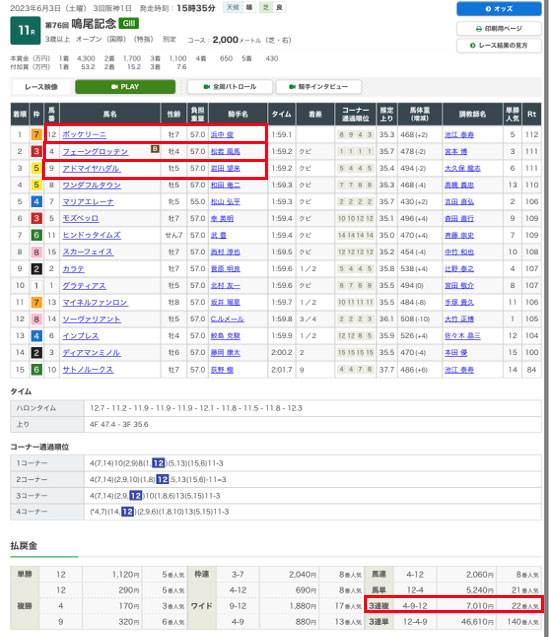 1、2番人気の飛んだレースなのでやはりおいしい配当がつきましたね。