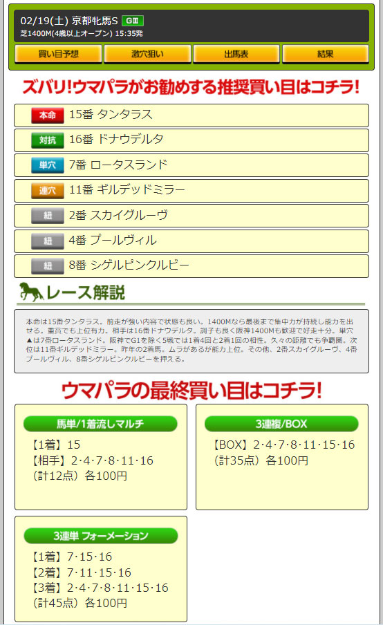【検証レース:2/19 東京11R GⅢダイヤモンドステークス】