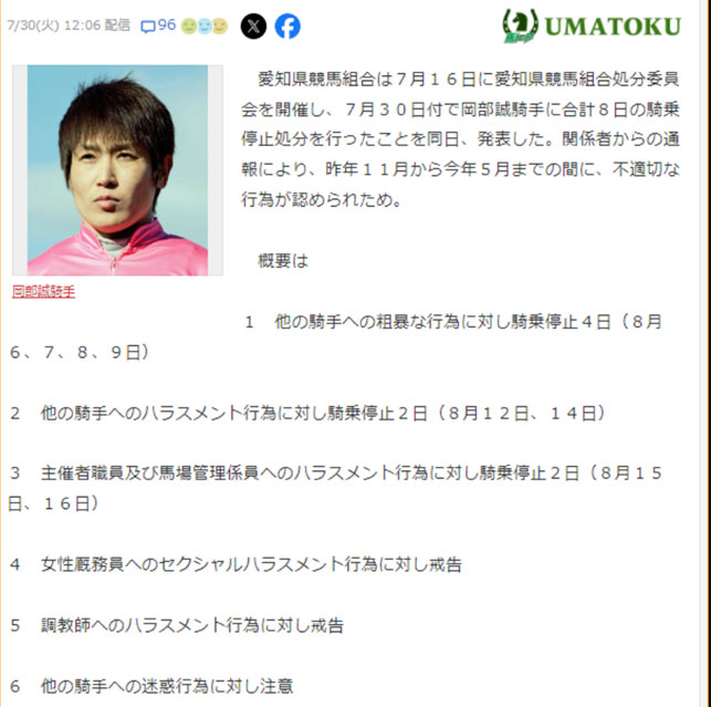 そして最近は中央地方問わず騎手の不祥事が多いですね…