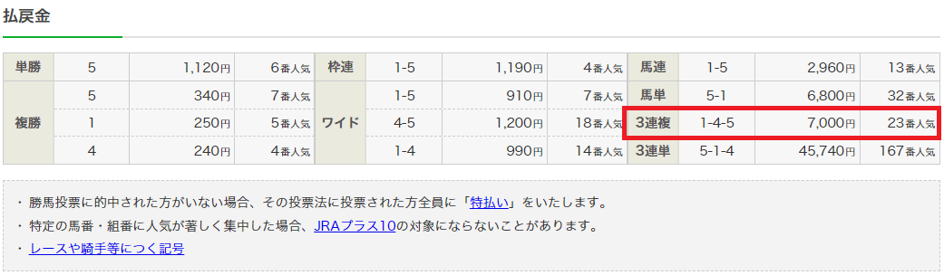 この買い目を参考に馬券種・3連複で馬券購入していれば7万円もの的中が手に入った!!