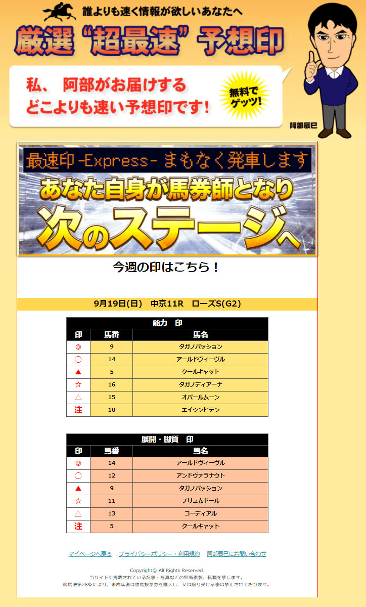 厳選“超最速”予想印、いったい何を言っているだ?と、疑問を抱いてしまう競馬予想サイト【阿部辰巳至極の競馬予想】を検証してみた。