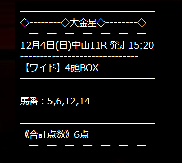 ワイドまったく見当違いな買い目でした。