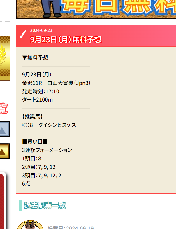 6点(1点3千円)1万8千円の馬券代が毎日王冠で一撃51万1800的中獲得! 他でもこのサイト優良だから使ってますが相性良いですね!