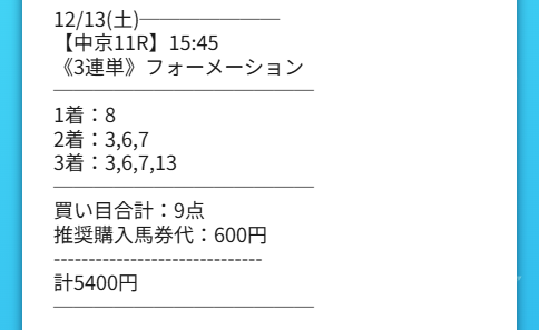 1人気ファミリータイム、2人気シンハナーダが馬券外で一波乱あったけど終わってみればハンデ重賞らしい中荒れでした。 シンケイバの予想に野ていたので事前に人気馬の構想外、中穴勢の激走を見抜けました。 JRAより引用 3連単 8-7-3 55,460円 166番人気 33万2760円払い戻し、よく3連単しかも9点で的中できたと思います。 自分の予想ならもっと点数広げて、上位人気2頭馬券外ではずれていたと思います。