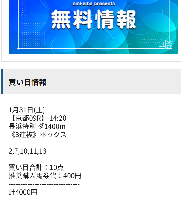 無料情報で出すの勿体ないんじゃないの?ってくらい的中率高い無料予想。