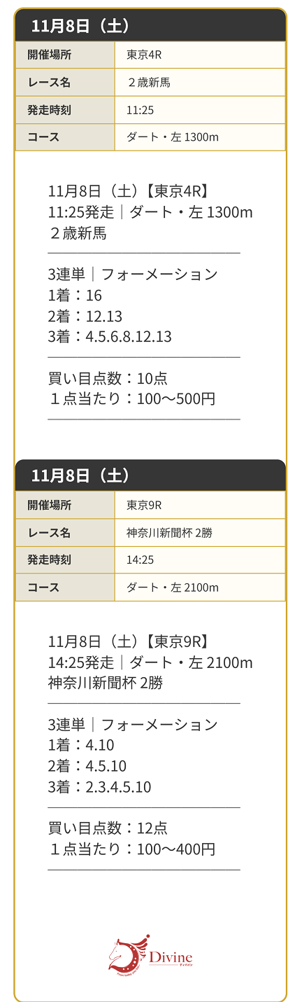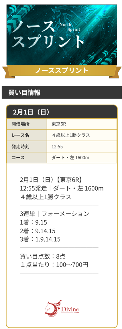 唯一の的中はディバインさんを使った予想に乗ったレースで万馬券