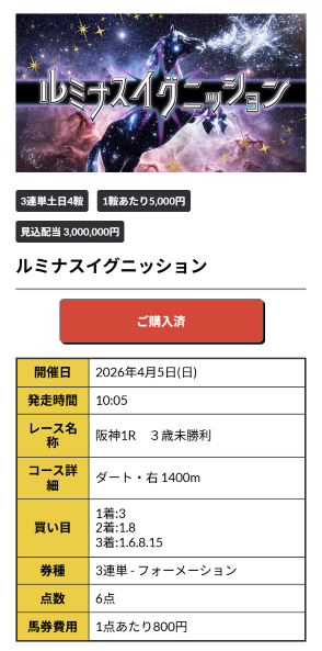 15日(日)の無料情報でめっちゃ勝てました! 朝一のレースから7万9900円とかありがたいね、金鯱賞も獲れたし大満足です!