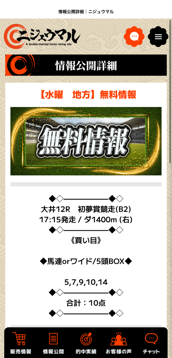 ニジュウマルの無料予想&有料予想ダブルで的中貰えました!